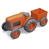 The Green Toys Tractor puts a whole new spin on farm-to-table. With chunky, go-anywhere tires and a detachable rear trailer, little farmers can harvest and haul the freshest organic produce their imaginations can grow. Super safe and versatile with no metal axles (no rust) or external coatings (no chipping or peeling), it's ready for any playtime payload, whether indoors or outside. Made in the USA from 100% recycled plastic, this might just be the "greenest" tractor around - despite its vibrant orange hue. No BPA, phthalates, or PVC. Recommended for ages 1 and up.