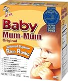 | 79 of 80 people found the following review helpful By charlie (California) - See all my reviews This review is from: Hot-Kid Baby Mum-Mum Original Flavor Rice Biscuit, 24-pieces (Pack of 6) (Grocery) This is what my wife wrote about these on her blog: 0 Pros: Great as a first finger food, low choking risk, tastes good, not very messy, packaged conveniently for on-the-go snack, does not contain wheat. Cons: Not sold in most supermarkets (have only found them at Walmart and Sam's Club and on Amazon.com), caused me temporary panic b/c they are made in China and contain skim milk powder BUT there seems to be no cause for concern. I've been giving Baby Mum-Mum rice crackers to SB as a snack since he was about 7 months old, and it was love at first bite. I taste all the stuff I give to SB to see how edible they are, and I have to say that they are pretty darn tasty. The crackers are very light and airy and sort of melt in your mouth as you chew (or mash in SB's case). They have a lightly sweet taste that makes them easy to eat. The box contains 12 conveniently wrapped packages of 2 crackers each - perfect for sticking in your diaper ba g for snack time on the go. After SB's bottom front teeth came in at about 6.5 months, I started looking for a teething cracker or biscuit that doesn't have wheat in it (I read that it's better to wait until baby is 9-12 months old before introducing wheat due to the allergy risk) and couldn't find anything in the grocery aisles, surprisingly. Then I came across Baby Mum-Mums at my local Walmart, which are made of rice, not wheat. Although Baby Mum-Mums aren't exactly a teething cracker, they were close enough for me. I mainly wanted something that SB could practice biting and chewing on. They've turned out to be the perfect starter finger food. Initially, I would hold the cracker for SB as he chomped on it, but after a little encouragement, he started taking the cracker in his own hand and feeding himself. Yay, his first successful attempt at finger food self-feeding! The crackers were great for giving him finger food practice, since they are easy for his little hands to clasp and big enough for him to find his mouth with it. As you can see from the picture, they have a long oval shape and are pretty thin, so it's easy to bite off pieces. And they don't create much mess at all - a few crumbs here and there. I've found them to be a great distraction for SB when he gets fussy on car rides or in his stroller. There are a lot of things to like about Baby Mum-Mums. The box highlights the following: -No Artificial Colors or Flavors -No Preservatives -Gluten, Egg & Peanut Free -Baked, Low in Fat & No Trans Fat -No Added Fats or Oils But there is another important thing to note about these crackers. They are made in China AND contain milk powder. About a week after the melamine-tainted milk scandal came to light in China, it suddenly hit me that my SB's beloved Baby Mum-Mums might be one of the foods affected by the tainted milk. I went straight to the web to see what informati on I could dig up on Mum-Mums and the melamine issue, and...it seems that they are safe. A big sigh of relief. This is what I found: Statement from National Importers (importer/distributor of the product): This basically states that Mum-Mums contain milk powder imported from New Zealand and that food authorities in China, Australia, Canada, and the US have tested batches of Mum-Mums with results all coming back negative for melamine contamination. The full post: sammybearsays.blogspot.com/2008/10/baby-mum-mum-rice-rusks.html 29 of 33 people found the following review helpful By Ray of Agoura (Los Angeles) - See all my reviews Amazon Verified Purchase(What's this?) This review is from: Hot-Kid Baby Mum-Mum Original Flavor Rice Biscuit, 24-pieces (Pack of 6) (Grocery) My husband and I came from Taiwan and have been living in the US for over 15 years. Normally we only buy Chinese snacks that are brand names and made in US or Taiwan. However, I was very glad to find this product in Amazon even though I just bought it today and haven't yet received it. I do know "Hot Kid" very well and used to have it for snack growing up in Taiwan. It was one of my few favorite snacks made by a well reputed Taiwanese company. I trust this brand just as I do General Mills or Kraft. It was already a major food company in Taiwan back then and "rice rusk" was the most popular product. Now, this company has made its way to becoming one of the three biggest food companies in China. Interesting enough, these three companies are all Taiwanese companies. I think the main reason is that people in China do not trust their own brands. I believe that "Hot Kid"is a quality food product. I think the worry is overdone and the red flag is unnecessary. My son is 7 months now and it was a pleasing surprise to have found this product in US. 0 16 of 21 people found the following review helpful This review is from: Hot-Kid Baby Mum-Mum Original Flavor Rice Biscuit, 24-pieces (Pack of 6) (Grocery) Oh my, as the mother of the world's crankiest teether, I should have been on the lookout for something like this. Honestly, I'm smacking myself in the forehead for not trying mum-mums earlier. Because my son? He loves him some mum-mum. They let him happily gnaw away before dissolving into non-choking hazard goo, and this kid has been pretty unimpressed with all those other teething products out there. I know because I own them all. Seriously, all of them. Sophie? Berry teether? Water ring teether? Bead teether? Mesh feeder-teether thing? Ice cube in a washcloth? They're all garbage in my sons eyes. Some asian rice rusks with a funny name=LOVE. 0 Pros: I can find them at my local Walmart. They're perfectly portioned with two to a package (like poptarts), and they're easily tossed into a diaper bag. I break them in half before handing them off to my son, but that's just because he has a tendency to randomly chuck things out his stroller, and thi