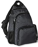 Our best Broad Bay crossbody backpack gives you quick access thanks to its single strap design that moves easily from your back to your chest. Super strong 1680 Denier Ballistic Nylon fabric along with extra large zippers make this sling style backpack durable enough for everyday use and travel. Other features include lots of pockets, a water bottle holder, a detachable phone holder, an adjustable padded shoulder strap, and an organizational panel with key fob in a zippered pocket. The teardrop shape positions weight behind your shoulder for comfortable carrying and less strain. A great gift idea for yourself, him or her! 17 x 13 x 7