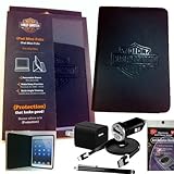 Harley Davidson Black Leather Folio Stand Case for iPad Mini. Comes with 3ft Charging Cable, USB Car Charger, USB House Charger, Metal Clip Horizontal Velcro Case with Belt Loop, Stylus Pen and Radiation Shield.